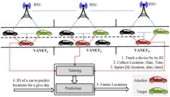 External Attack: An attacking device is located anywhere on the Internet. Figure 5 shows the locations of the adversaries in the external networks. The threat model for external attacks can be as follows. A malicious application can be published in the application store, and later this application can be installed on a smartphone that is used to control IoT devices. Similarly, a malicious application can be installed on the cloud servers where sensitive sensor information is stored. The malicious applications can leak sensor data and users’ personal information, such as a patient’s health conditions received from their medical devices, to the Internet. Moreover, the malware can exploit vulnerabilities in the Gateway device [,] of an IoT network to gain unauthorized access to smart devices and networks remotely. The malware can perform various web service attacks, such as SQL injection and cross-cite scripting, using the compromised Gateway device.