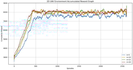Reinforcement learning (RL) [], a subset of machine learning, is predicated on the interaction between intelligent agents and their environments to facilitate decision making. This method has seen considerable advancements in areas such as systems control and gaming, and it holds significant promise for UAV trajectory planning and control [,]. However, the intricacies of UAV control and the dynamic nature of their operational environments necessitate rapid and precise decision making from these agents, challenging the capabilities of traditional RL methods.