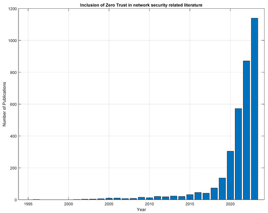 Mentions of the term ‘Zero Trust’ in network security oriented research publications starting from the year 1994.