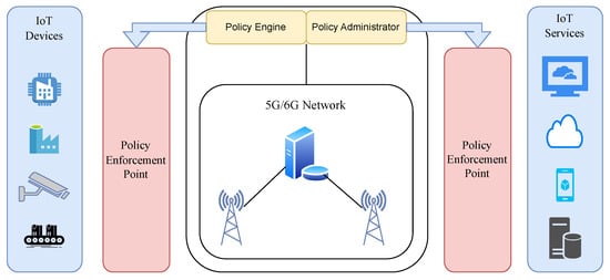 As 5G expands its presence worldwide, the scientific literature evaluating the security aspects of 5G has grown, especially regarding surveys into specific areas of 5G’s implementation. For example, in [4], the current research and challenges of security for different aspects of cloud services, RAN, MEC, and network slicing are investigated. The insights presented in this paper are focused on the need to deploy future 5G networks while taking great care of the vast security aspects. Understanding that these networks will serve applications to a wide range of consumers, they need to provide adaptability, resilience, and flexibility, embodied and provided by Software-Defined Networking (SDN) and Network Function Virtualization (NFV), in order to be able to provide and enforce comprehensive security measures. The authors of [5] focus their security research on access, handover, IoT, D2D, V2X, and 5G network slicing, whereas in [6], the focus is on architecture and design, attacks on 5G, physical security, and V2X. Both of these publications showcase potential vulnerabilities to the security mechanisms within architecture, specifically for authentication and network slicing, and thereby emphasize the need for more fine-grained security control in the network. A comparative analysis of 5G security mechanisms is discussed in [7,8], which includes a wide survey into the overall 5G security framework, Core Network, Radio Access Network, cloud infrastructure, and the Internet of Things. IoT protocols for 5G are reviewed in [9]. An overview of the threats to, and vulnerabilities of, both 5G and 6G, is presented in [10] with a specific focus on SDN, NFV, and MEC in 5G networks. The security issues of network coexistence are investigated in [11] with a focus on 5G/6G coexistence with WiFi 6. Application-specific attacks are outlined in [12] with a focus on cyber–physical systems, fog computing, and SDNs. The contributions from these primary surveys showcase the need for continued research and a strong focus on improving the adoption and implementation of security mechanisms. For confidential communication and heightened network monitoring and security, a Zero Trust Architecture (ZTA) is recommended, particularly in a 5G setting. ZTA opens the door for operations in which the assumption is that the attacker is always one step ahead of the fix or patch to a network issue.