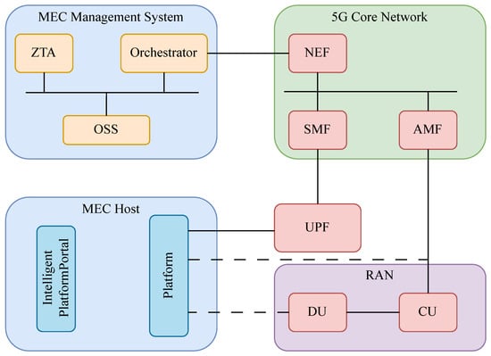 - Feng, Z.; Zhou, P.; Wang, Q.; Qi, W. A Dual-layer Zero Trust Architecture for 5G Industry MEC Applications Access Control. In Proceedings of the 2022 IEEE 5th International Conference on Electronic Information and Communication Technology (ICEICT), Hefei, China, 21–23 August 2022; pp. 100–105. [Google Scholar] [CrossRef]