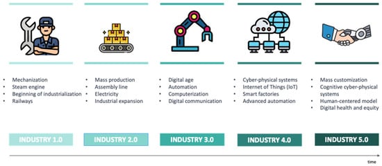 Figure 1 illustrates the evolution from Industry 1.0 to Industry 5.0.