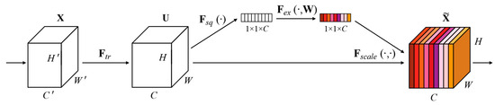 In Figure 2, given an input X with a feature channel number of , a feature with a feature channel number of is obtained after a series of convolution and other transformations [25].