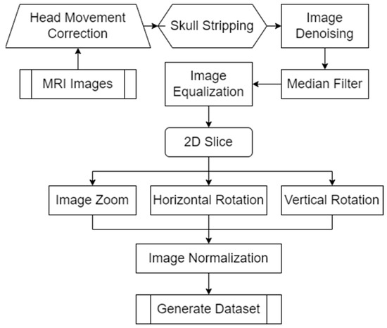 MRI (Magnetic Resonance Imaging) images provide doctors with clear, high-resolution images of the internal tissues and organs of the body. These images can reveal abnormal structures and help doctors accurately diagnose and develop treatment plans. To further improve the accuracy and reliability of the model, we designed a method to preprocess MRI image samples. The specific process is summarized as shown in Figure 4.