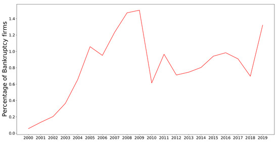 Rate of bankruptcy in the dataset (2000–2019) with financial variables in the period 1999–2018.