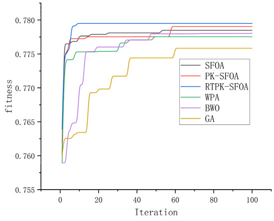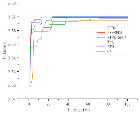 To ensure that the algorithm has good real-time performance and can be applied to practical scenarios, it is specified in this article that the algorithm should run within 120 s and 100 iterations. Based on this, various algorithm parameter settings are determined, as shown in Table 2 (for the SFOA, PK-SFOA, RTPK-SFOA, WPA, GA, and BWO).