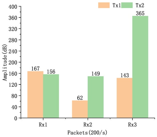 The sensitivity of a transmitting antenna to the environment can vary due to the existence of the Fresnel zone. To address this, we selected the transmitting antenna based on the variance in the amplitude. As illustrated in Figure 5, among the three receiving antennas, the amplitudes of the signals received by in were slightly larger than those received by . However, in and , the amplitude of the signals received by was significantly larger than that received by . This suggests that exhibited a significantly higher sensitivity than . Therefore, we opted to use as the transmitting antenna for our data collection.