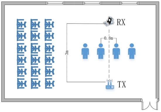 The experiment involved data collection from 12 volunteers, comprising 7 males and 5 females aged between 20 and 30 years. We collected data from 5 legitimate individuals, each contributing 200 entries as single-user data. Additionally, data collection was also conducted on legitimate and illegitimate combinations of different user counts, with each group comprising 180 records, resulting in a total of 3580 records. For example, for a triple-user combination, we collected data for three scenarios: all three being legitimate users, two legitimate users with one illegitimate user, one legitimate user with two illegitimate users, and three illegitimate users. Each scenario involved the collection of 180 records. Regarding the determination of legitimacy or illegitimacy, we considered that as long as there was at least 1 single-user in the crowd who was legitimate, then it could be considered that these people, with the permission of the legitimate individual, were also legitimate. The basic information of the volunteers is provided in Table 2. During the experiment, the volunteers maintained a distance of 0.8 m and performed stepping movements with a natural posture for approximately 5 s each time.