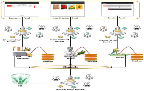 Due to Ethereum’s significant smart contract support, the system, which is largely a peer-to-peer network, was used to develop the blockchain-based seed supply chain. The proposed system’s architecture is shown in Figure 12.
