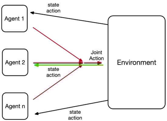 - Rashid, T.; Samvelyan, M.; De Witt, C.S.; Farquhar, G.; Foerster, J.; Whiteson, S. Monotonic value function factorisation for deep multi-agent reinforcement learning. J. Mach. Learn. Res. 2020, 21, 7234–7284. [Google Scholar]