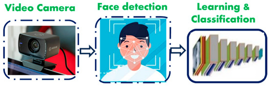 The image acquisition and processing classification system, illustrated in Figure 4, consists of three primary steps. The first step employs the Open-CV library for face recognition. In the second step, learning takes place, followed by the third step, which involves image classification. Deep learning algorithms, specifically convolutional neural networks, are utilized for both learning and classification, enabling matching with the database. Ultimately, the classification results are displayed to the user.