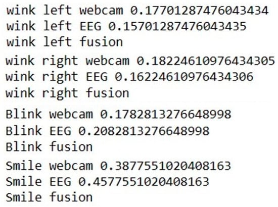 The fusion method provides higher accuracy compared to EEG signals or a webcam. The accuracy of the fusion method is always higher than that of the webcam and EEG signals, as shown in Figure 13.