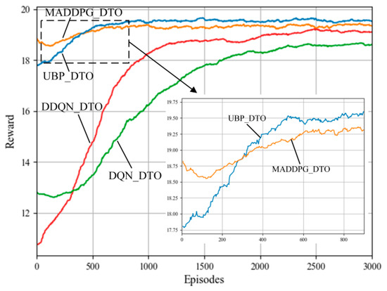 - Simulation results show that the proposed algorithm performs better than the DQN and DDQN single-agent algorithms in terms of both delay reduction and resource utilization improvement. In addition, the algorithm reduces the response latency by 6.7% and improves the resource utilization by 30.6% compared to the suboptimal offloading algorithm based only on MADDPG and reduces nearly 500 training rounds during the learning process, which effectively improves the timeliness of the offloading strategy.