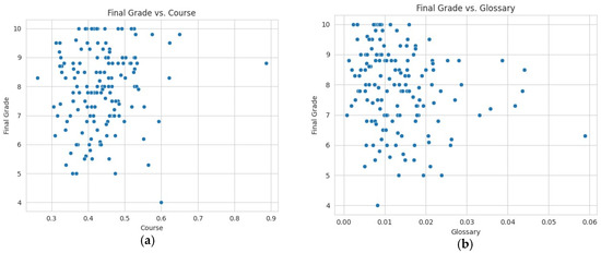(a) Final grade vs. Course state probability. (b) Final grade vs. Glossary state probability.
