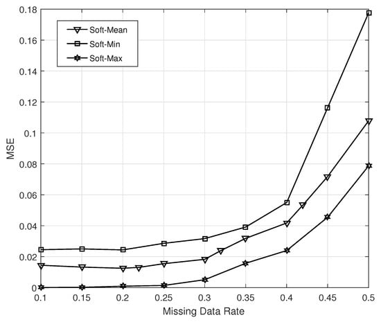 Furthermore, we demonstrate the results with simulated data and illustrate the convergence of our proposed method among different parameter settings. Within the simulation experiment, the constraint of the measurements has been defined as shown in Equation (7a,b). First, we clarify the effect of missing input in data aggregation, where the number of missing data points is in different positions for each observation. As mentioned, the data distribution is assumed to be Gaussian with an i.i.d. correlation feature. For these assumptions, we show the performance of our approach for estimation of the OWA weighting vector from which the model of missing data is obtained. Also, we show its performance when there are a varied number of missing inputs. It can be seen that a Gaussian distribution is utilized to make the approach more precise in data aggregation. As mentioned earlier, this approach considered the number of the observation datasets M to be 500, the number of simulations is 20, while the number of variables (N) is four. At first, a Gaussian distribution is used to model the missing input within the observation dataset. Subsequently, another dataset is generated randomly to produce the missing values within the datasets based on the percentage number of the disappeared inputs, as shown in Table 3. The percentage of disappeared numbers is assumed to be and randomly chosen within the observation. The efficiency of the missing data imputation approach is determined by calculating the mean standard error.