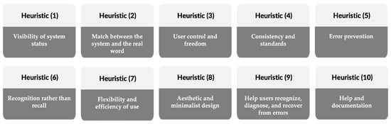 - Nielsen, J. “10 Usability Heuristics for User Interface Design”. Available online: https://www.nngroup.com/articles/ten-usability-heuristics,1994. (accessed on 22 May 2024).