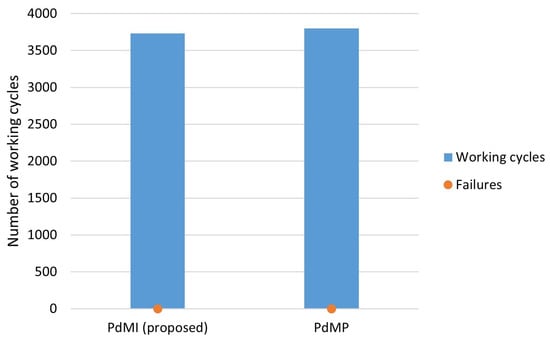 In Case A, as the is much higher than , it was expected that the PMC strategy would have good results, but the minimum time between failures observed in the training instances (119 working cycles) is very conservative since the majority of friction welding tools failed after performing more than 500 working cycles. For this reason, the PMMTBF achieves better results than the PMC in both scenarios because the higher exploitation of the useful life of tools compensates economically for the higher number of failures. The dynamic adjustment of maintenance intervals in the PMD strategy emerges as a highly effective mechanism for striking a balance between exploiting assets’ lifetimes and minimizing the incidence of failures. As can be seen in Figure 8, this approach outperforms traditional preventive approaches for both cases, achieving cost savings of 19.5% and 51.8%, respectively, for Cases A and B.