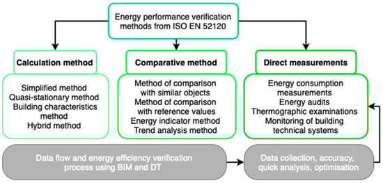 Energy performance verification methods from EN ISO 52120 with potential BIM and DT application support.
