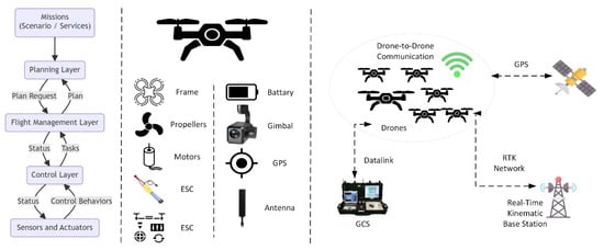 - Control layer: Interfaces directly with drone hardware, sending commands to sensors and actuators and handling real-time adjustments to maintain the stability and trajectory.