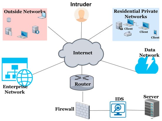 The continuous growth of the Internet has led to numerous cybersecurity challenges, necessitating robust solutions to protect digital infrastructures. Intrusion detection systems (IDSs) play a crucial role by meticulously analyzing data streams such as network packets for signs of threats [1]. Positioned as the second line of defense after firewalls, as illustrated in Figure 1, IDSs utilize advanced algorithms to identify anomalies, facilitating prompt response from administrators. Beyond threat detection, Figure 2 illustrates that IDSs offer real-time monitoring, detailed analysis, instant alerts, and administrative controls, enabling organizations to stay vigilant against evolving cyber threats. In essence, an IDS is an essential component of modern cybersecurity, fortifying networks against relentless attacks in an era of escalating digital risks [2]. The proposed system architecture showcases collaborative efforts enhancing cybersecurity, with machine learning (ML) and deep learning (DL) pivotal in anomaly detection.