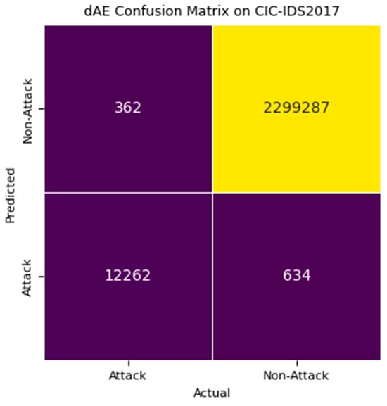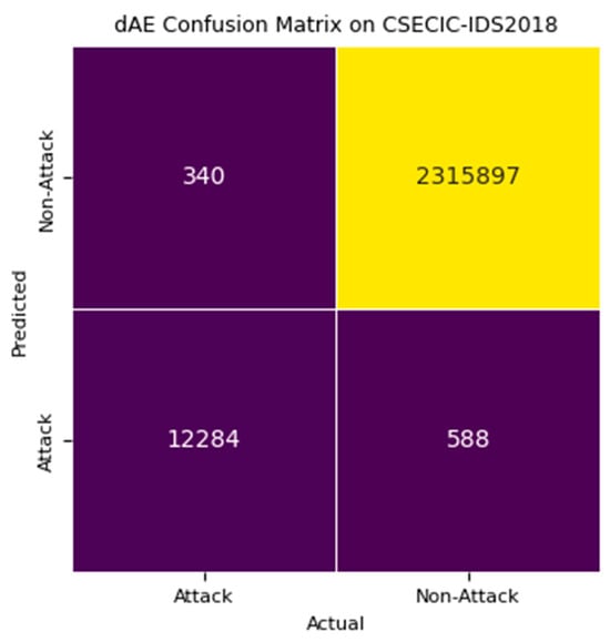 OCSVM correctly identified 227,218 as true positive samples, while dAE detected 226,719, indicating that OCSVM found an additional 499 samples missed by dAE. On the other hand, dAE identified 226,719 samples correctly, while OCSVM detected 227,218, showing that dAE missed 499 samples that OCSVM detected. The combined use of OCSVM and dAE effectively reduces false negatives and false positives to just 340 and 588, respectively. This underscores the method’s effectiveness in minimizing detection errors.