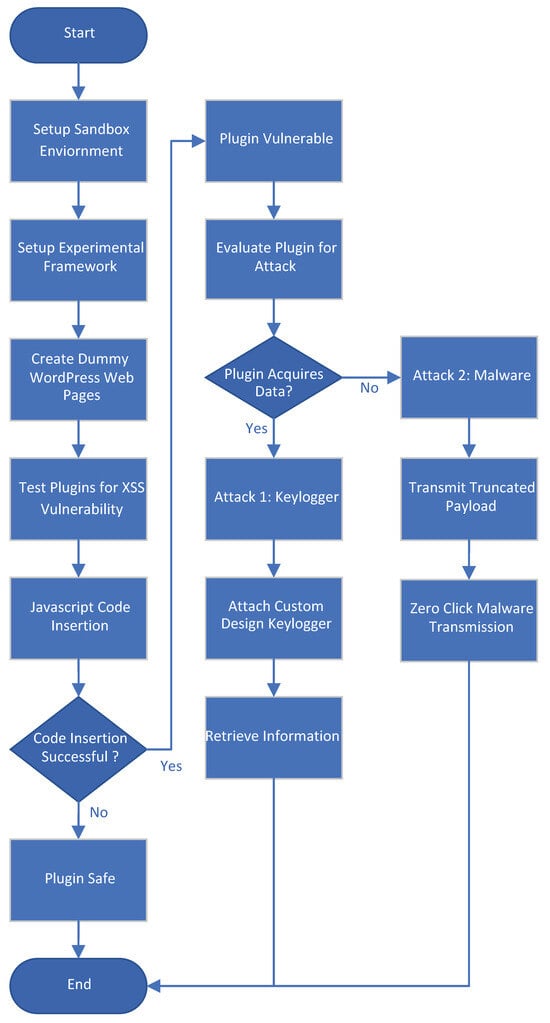 Figure 2 shows the process followed to test vulnerabilities. Each plugin was rigorously tested to identify vulnerabilities that could be exploited through XSS attacks. We did this by dynamically inserting and executing JavaScript code within each plugin to see how they handled potentially harmful inputs. If the scripts were executed successfully, it indicated that the plugin had vulnerabilities that attackers could use to inject malicious code, create backdoors, or steal sensitive data.