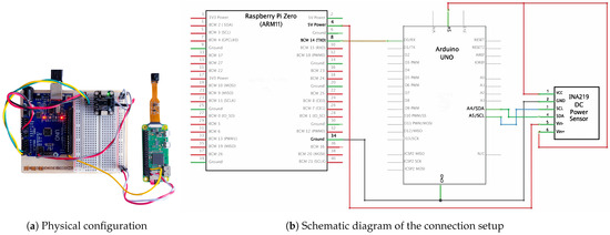 The benchmarking tool has been optimized for deployment on the Raspberry Pi Zero, which is characterized by its single-core ARM11 processor [21] and seamless integration with the camera module. This processor was selected due to its limitations in computational power and memory capacity, which are key factors in simulating the performance characteristics of lightweight cryptographic algorithms in constrained environments. The Raspberry Pi Zero is equipped with 512 MB of RAM and effectively manages memory to thwart bottlenecks during the processing of resource-intensive live video stream feed. The header on the device is strategically utilized, with specified pins used for providing power to the device and for serial data transfer. This enables the use of the transfer (Tx) line on the Raspberry Pi to communicate with the Arduino. This is essential for indicating the start and end of power and energy measurements at the beginning and end of each cryptographic process. This configuration ensures the precise tracking of the Raspberry Pi’s energy consumption while executing the selected LWSC. Further explanation of this connection and its role in the benchmarking framework will be provided in the subsequent section on evaluation metrics.