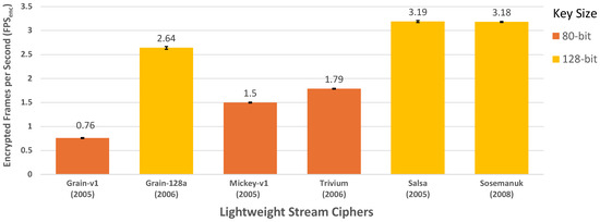 Frames encrypted per second by the selected Lightweight Stream Ciphers (LWSCs).
