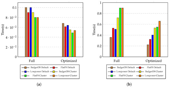 Observation 2: As demonstrated by the results for the IPFS configuration in Figure 4a, depending on the storage engine, the optimized version of the model achieved a read performance improvement of 30% to 40% compared to the full version. But for persisting the data, as shown in Figure 4b, the optimized model’s improvement was smaller, ranging from 20% to 25%.