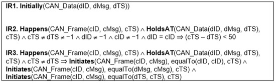 The development of IVN security countermeasures is hindered by various factors. The application of sophisticated attack detection mechanisms requires significant amounts of computing power and therefore cannot be used in vehicles due to the limited ECU processing capabilities [11,12,13]. Moreover, the implementation of IVN security mechanisms must ensure that the normal functionalities of the vehicle are not impacted [14]. Improvement of security and resilience of autonomous vehicles has attracted significant attention in the literature. A prominent example are approaches inspired by the principle of “security by design” practiced in the software industry [15,16,17,18] and stating that existing secure development processes should be adapted and incorporated in the design and development of autonomous vehicles. These approaches, however, may not be readily acceptable to the manufacturer as they may require a major redesign of the vehicle or of its components. Various techniques have been applied to perform real-time IVN detection of threats and attacks including signature based [2,14], machine learning based [19,20] and frequency based techniques [7,21,22]. These approaches, however, may not be effective due to the low processing power of the CAN network and the lack of uniform semantics of CAN messages across different car makes and models.
