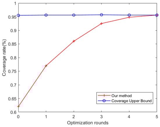 We compared the results of the proposed method with the theoretical CUB, which from another perspective demonstrates that the proposed method has good coverage performance. As shown in Figure 9, as the number of iterations increases, the coverage of our method tends to approach the CUB. With a sufficient number of sensors, our method can achieve the theoretical maximum value through multiple iterations.