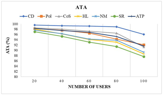 Asset transfer accuracy (ATA) across different networks with varying numbers of users.