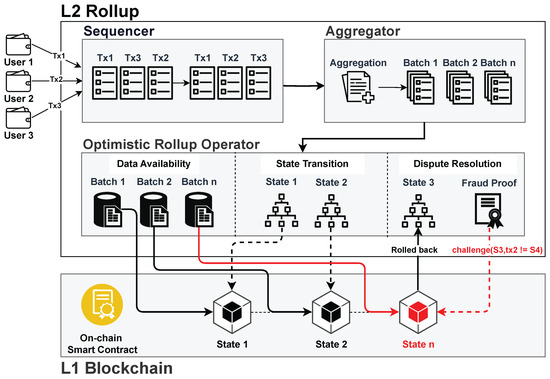 Dispute Resolution (specific to Optimistic Rollups)—Unlike zk-rollups, optimistic rollups consider every transaction valid and do not submit the validity proofs on-chain, which is why it is called optimistic. Optimistic rollups define a challenge period in which anyone can challenge a transaction and create a dispute before finalizing the transactions on the main chain. In this case, a fraud proof is provided to the final user to demonstrate the correctness of the data posted on L1.