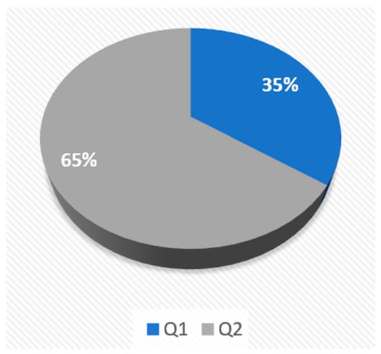 Considering the indexing quartile from WoS databases, most papers are published in quartile Q2-indexed journals, as shown in Figure 7. Overall, there are more than 1600 citations for the study-included articles.