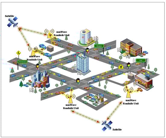 Intelligent Transportation Systems (ITSs): the integration of satellite communication, millimeter-wave (mmWave) roadside units, and connected vehicles.