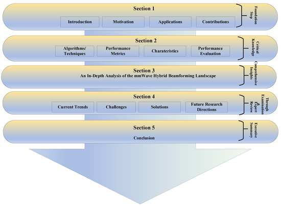 Figure 3 illustrates the organization of this systematic review, which consists of five sections starting from Section 1, which constitutes a foundation stone; Section 2 contributes by providing critical knowledge; Section 3 contributes by providing comprehensive insights; Section 4 provides a thorough examination as well as an expert review; and finally Section 5 serves as an executive summary.