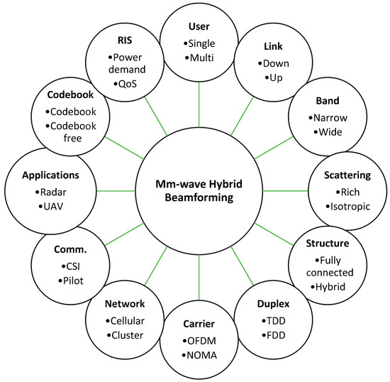 - An in-depth analysis of the mmWave hybrid beamforming landscape is provided based on user, link, band, scattering, structure, duplex, carrier, network, applications, codebook, and reflecting intelligent surfaces to optimize system design and performance across diversified user scenarios.