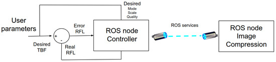 Once the scale and quality are computed, the number of channels of the image depends on whether the scale and quality % are lower than an established threshold value (20–50%). If that is the case, the image changes from RGB (3 channels) to grayscale (1 channel) or vice versa. In summary, the setpoint is the Time between frames (the inverse of the desired frames per second), while the actual measurement is the request frame latency (the time elapsed between the invocation of an ROS service for an image and the reception of the response indicating it was received).