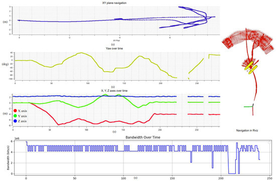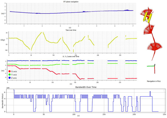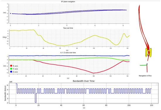 For this test, an iPerf [28] test was run while the robot was developing a trajectory. iPerf is a network testing tool used to measure the bandwidth and performance of IP networks by generating TCP and UDP traffic between two hosts. When running iPerf, the network test has high priority over other data. This is important because it provides reliable, detailed statistics on network throughput and packet loss, making it useful for diagnosing network issues and optimizing performance.