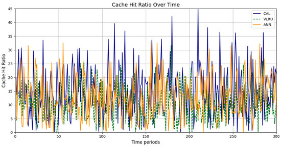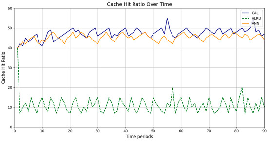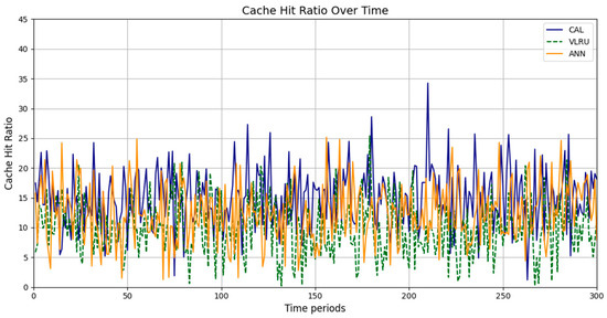 This performance gap can also be attributed to the static nature of CAL’s cache aging mechanism. While CAL effectively prioritizes recently updated data, it lacks the flexibility to dynamically adjust its parameters based on observed trends or historical request patterns. Conversely, the ANN utilizes a dynamic learning process that continuously adapts its caching strategies as new patterns emerge. This allows the ANN to maintain a higher cache hit ratio in environments with variable or unpredictable request frequencies as it can allocate resources more efficiently.