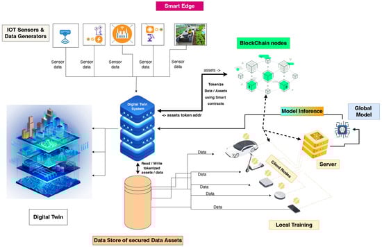 Incorporating AI-driven analytics into digital twins has expanded their capabilities but also introduced challenges related to data security, privacy, and the explainability of automated decisions []. Addressing these challenges necessitates a robust framework that integrates federated learning (FL), blockchain technology, and Explainable AI (XAI) to create a secure, scalable, and interpretable digital twin ecosystem.