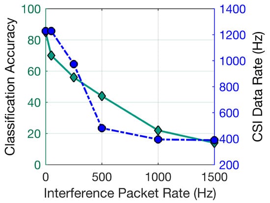 In summary, the accuracy of Wi-Fi sensing is influenced by the CSI data rate, which is limited by the coherence time of the activity being sensed. Additionally, the hyperparameters of the ML algorithm are governed by the data rate for training. Therefore, any fluctuations in the rate of CSI capture will negatively impact the system’s performance. To prove this assertion and determine the necessary CSI data rate, we will be conducting experiments on Wi-Fi-based keystroke recognition for varying transmission rates in the following section.