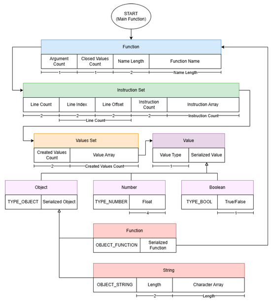 Serialization and deserialization are crucial processes within the virtual machine, enabling the conversion of function objects to binary data and back, respectively. These operations play an essential role in ensuring data persistence, where serialization allows for values to be saved and retrieved efficiently, and deserialization facilitates the reloading of data into the virtual machine’s environment. Particularly in scenarios involving reconfiguration requests, deserialization becomes vital as it interprets new configurations by transforming the binary data into executable functions [28]. This transformation is fundamental for updating the virtual machine’s behaviour on the fly, ensuring it adapts seamlessly to new operational requirements.