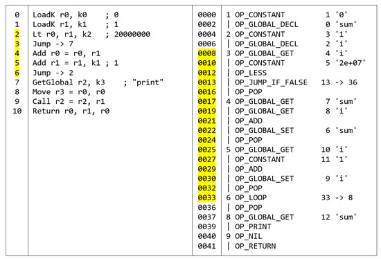 Comparison of the decompiled code for Lua 5.0 and Stella with loop instructions highlighted (authors’ contribution).