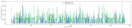 Serialization and deserialization times during stress testing (authors’ contribution).