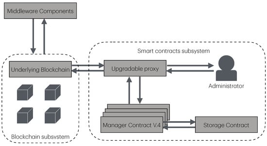 Diagram of the proposed architecture for the communication between the system’s components and the underlying blockchain.