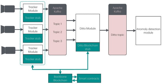 The focus of this discussion lies in integrating the proposed security system into the pre-existing AiWatch architecture. To achieve this objective, the development of specialized sub-modules for both Tracker and Ditto was required, while the specified smart contracts and the underlying blockchain infrastructure were provided to support the system’s functionality. A visual schematic description of the system is provided in Figure 9, where the proposed integration is included.
