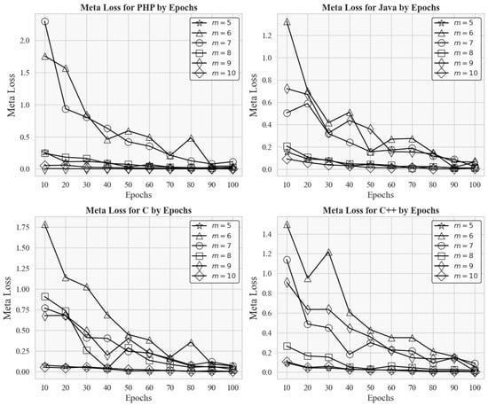 | SySeVR [27] | 1. Abstract Syntax Tree (AST, ): Evaluates relationships between nodes, requiring operations. 2. Program Dependency Graph (PDG, ): Captures semantic dependencies, generating combinations for multi-level relationships. 3. Integration bottleneck: Combined AST and PDG operations elevate complexity to . | Performance: F1 of 85.8% in C/C++. Proto-MAML avoids graph dependencies, improving scalability and accuracy, and surpasses SySeVR by 11.43%. | |