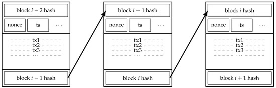 In brief, cryptocurrency technologies are supported by the blockchain algorithm, which permits the creation of a distributed ledger. This ledger is structured as a sequence of blocks that are cryptographically linked, ensuring that the information stored on them remains immutable, as shown in