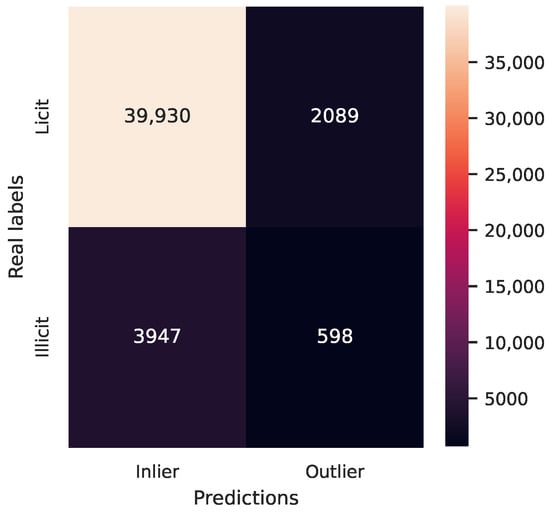 Although the table shows that most algorithms seemed to obtain poor performance, particularly when predicting illicit labels, it is worth noting that these predictions were based only on the features of the data and did not take into account their labels at any moment. Thus, they were expected not to reach the performance of traditional supervised learning models, but on the other hand, there was the advantage of not needing manually obtained labels, avoiding a tedious and complicated process. Moreover, these methods are noticeably more performant than others based on deep learning frameworks or graph-related solutions and therefore are more suitable to be applied on massive datasets or even the entire blockchain.